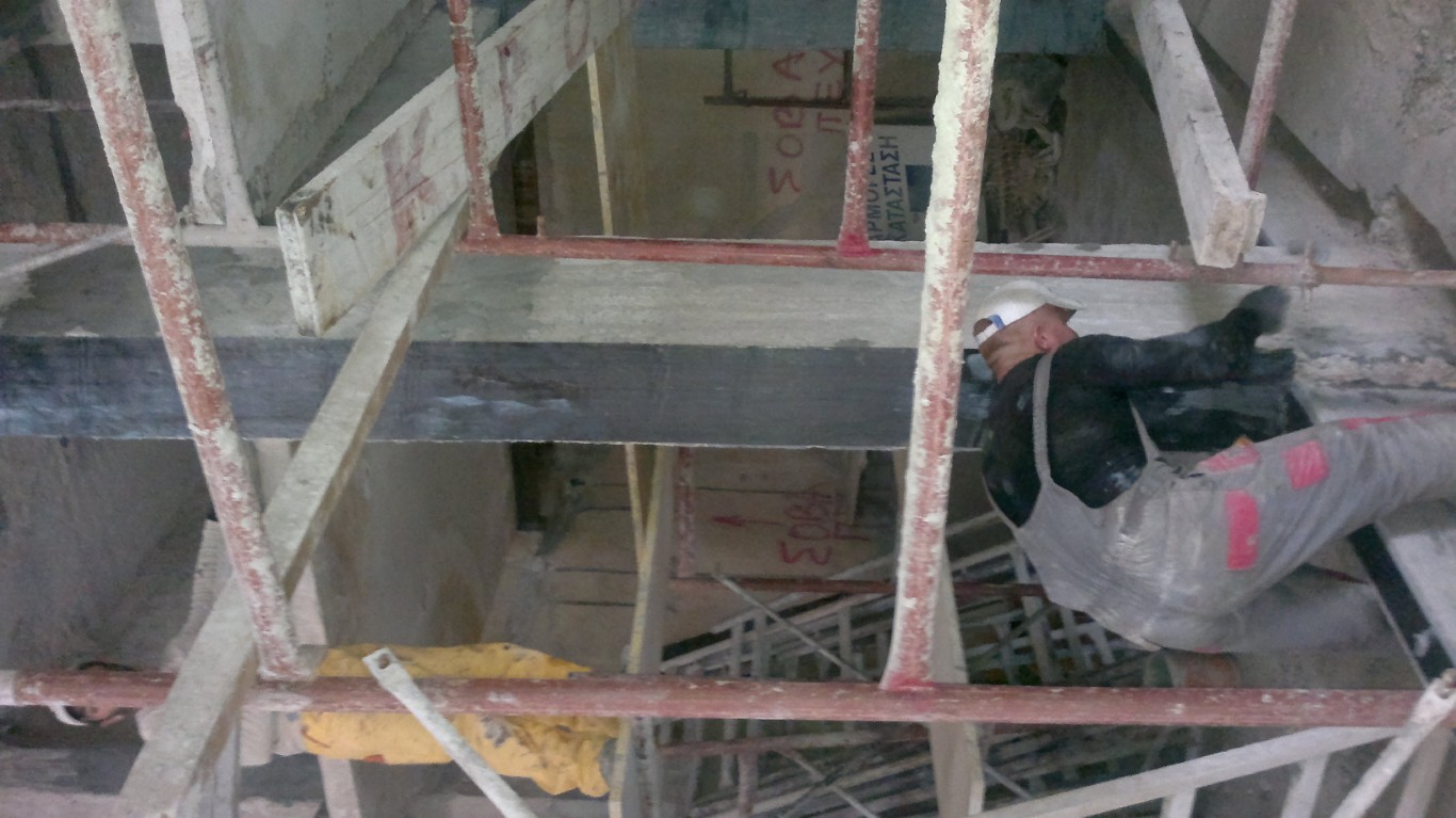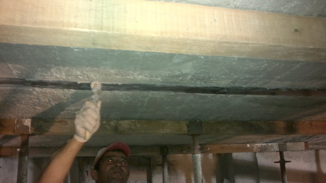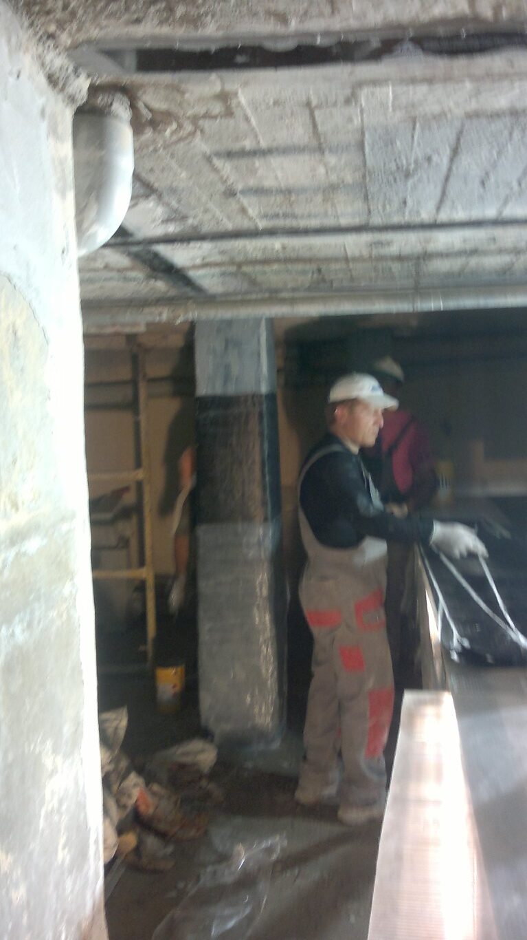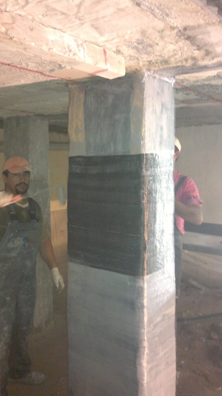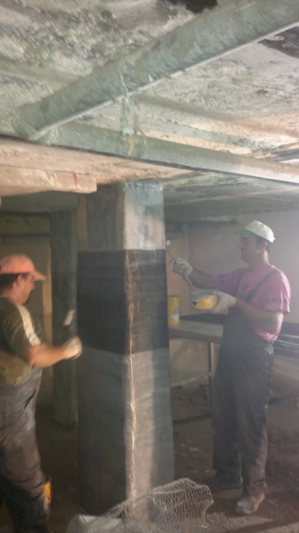 Παράλληλα, εφαρμόστηκε εκτοξευόμενο σκυρόδεμα σε επιλεγμένα σημεία για την αποκατάσταση της φέρουσας ικανότητας και τη συνολική στατική αναβάθμιση του φορέα.