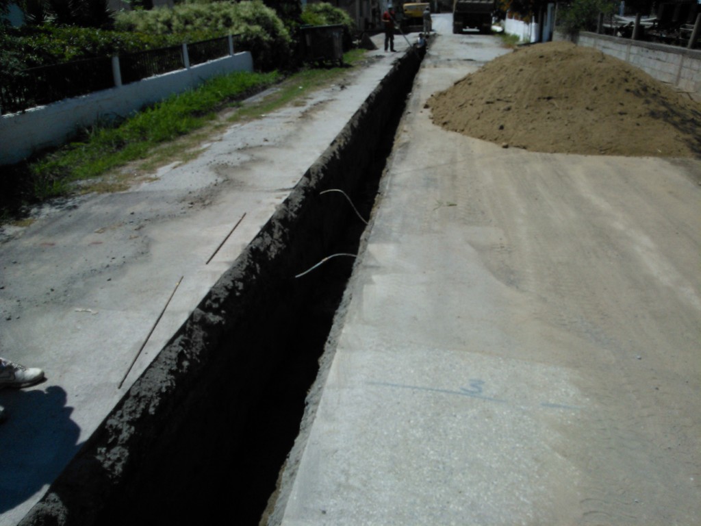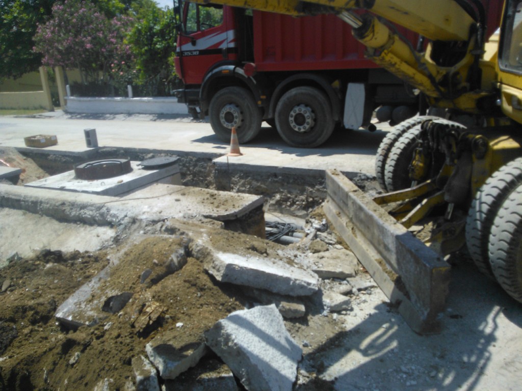 Το έργο περιλάμβανε εκσκαφές, τοποθέτηση αγωγών υπό πίεση, φρεάτια επίσκεψης και έργα αποκατάστασης οδοστρωμάτων, με αυστηρή τήρηση των τεχνικών προδιαγραφών και των κανόνων ασφαλείας.